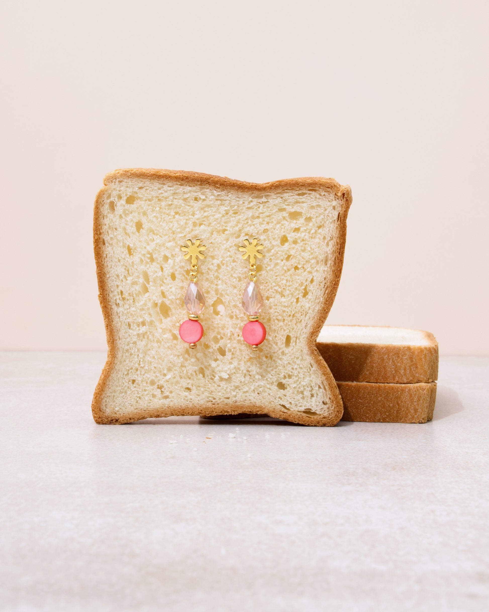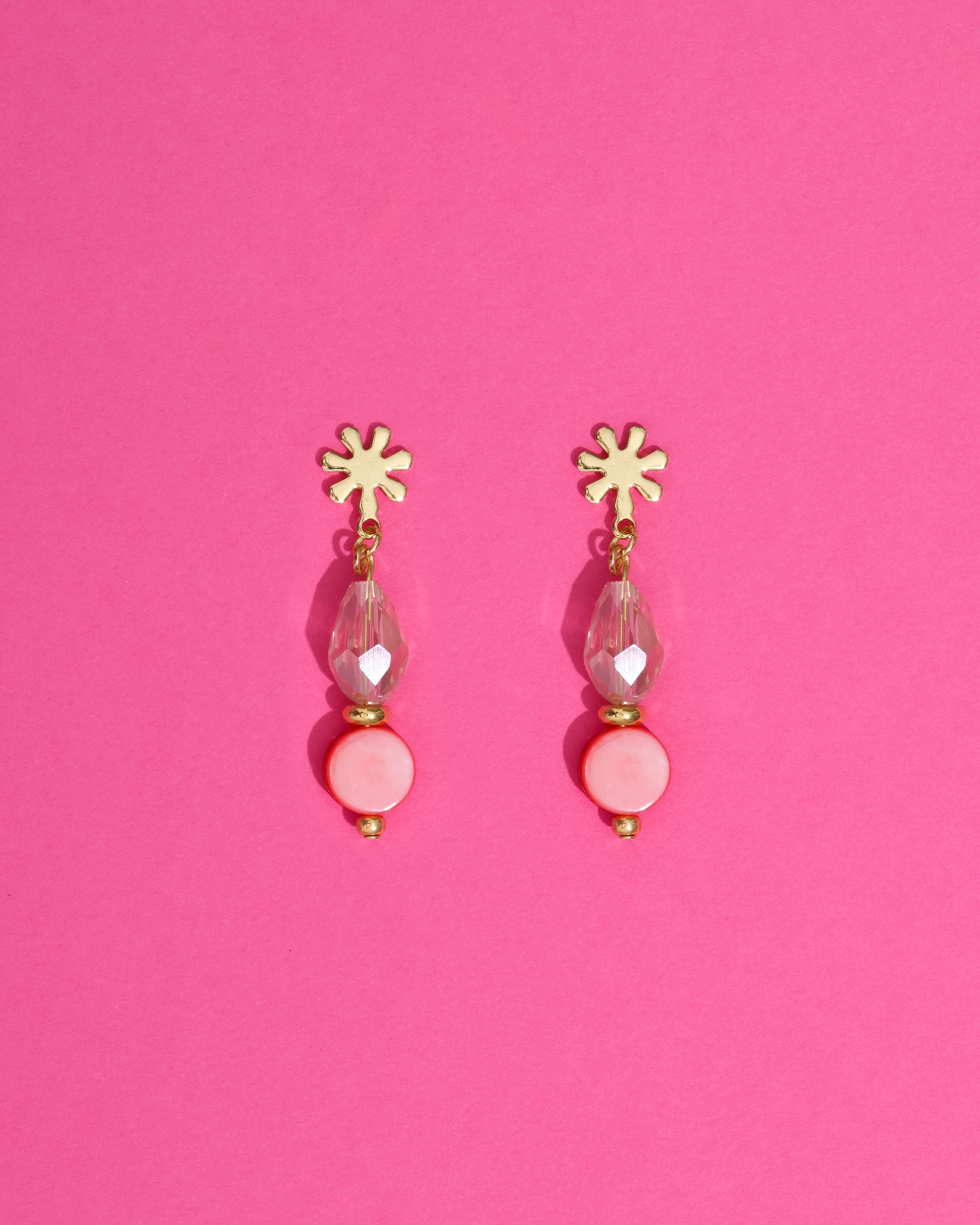 Gold-plated flower stud with faceted glass and nacre pink beads